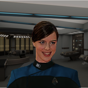 Personal History | Nina was born on Betazed, the only child of a human father and a Betazoid mother. Her parents divorced when she was young, so she shared her time between living in her mother's estate on Betazed and her father's house in Yorkshire, England on Earth. She soon found that she preferred the 'working class' life on Earth to the pampered life on Betazoid. She enlisted in Starfleet on the advice of a friend , after she'd finished her school and wasn't sure what to do next. During her training she discovered a talent for clerical work, and being a people person, she was assigned to the Pioneer in her current position. |