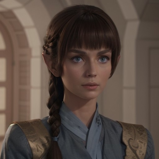 Physical Description | T'Vala appears to be in her late 30s or early 40s because of the Vulcan lifespan. She is slim and waif-like, with the grace of a dancer. When dressed in her formal Vulcan robes, she has the air of a born leader. She can also wear simple clothing and apear to be no one of import. She often uses this ability to pass unnoticed or to avoid the pomp of her position. Contrary to some Vulcan preferences, she keeps her hair long. In public she wears it in a long braid or coiled around her head like a crown. |