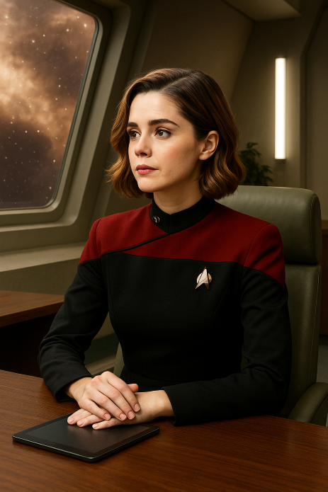 | Hobbies & Interests | Raised in a village that valued simplicity and self-sufficiency, Sofia developed a deep appreciation for tangible, grounded experiences. She is an avid reader, with a strong preference for traditional paper books over digital formats, finding comfort in the feel and scent of printed pages. Reading provides her with both an escape and a window into the vastness of the galaxy she now serves. In her free time, she enjoys practising yoga, finding balance and focus in its calming discipline. Physical wellbeing is important to her, and she maintains a steady fitness routine, though always in moderation. Social by nature, she loves the company of others and enjoys lively conversations, even if forming new friendships doesn’t always come easily. Technology, though an essential part of her Starfleet role, is something she engages with out of necessity rather than affection, an echo of her humble upbringing where such tools were rarely used. |